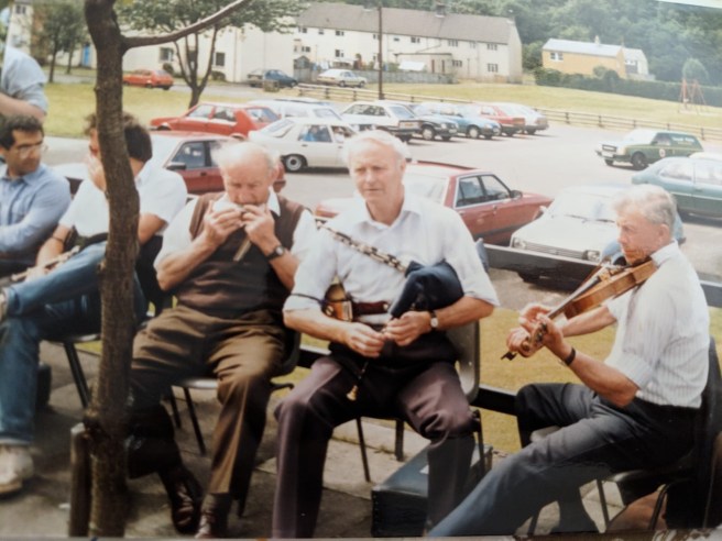 The Kielder Festival stands out in my mind and I remember, though possibly only from photographs (more of which I hope to add at a later date), playing at sessions with Joe Hutton, Willy Taylor and Will Atkinson, collectively know as The Shepherds, plus Alistair Anderson & Katheryn Tickell.